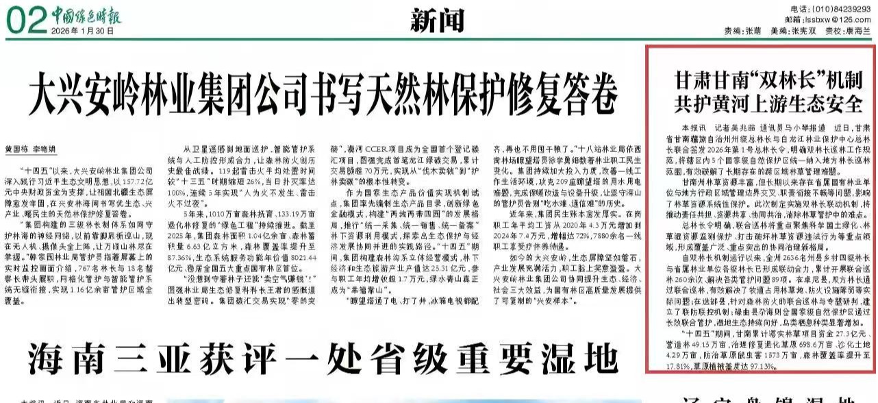 - 甘肃甘南“双林长”机制共护黄河上游生态安全 2026-01-30