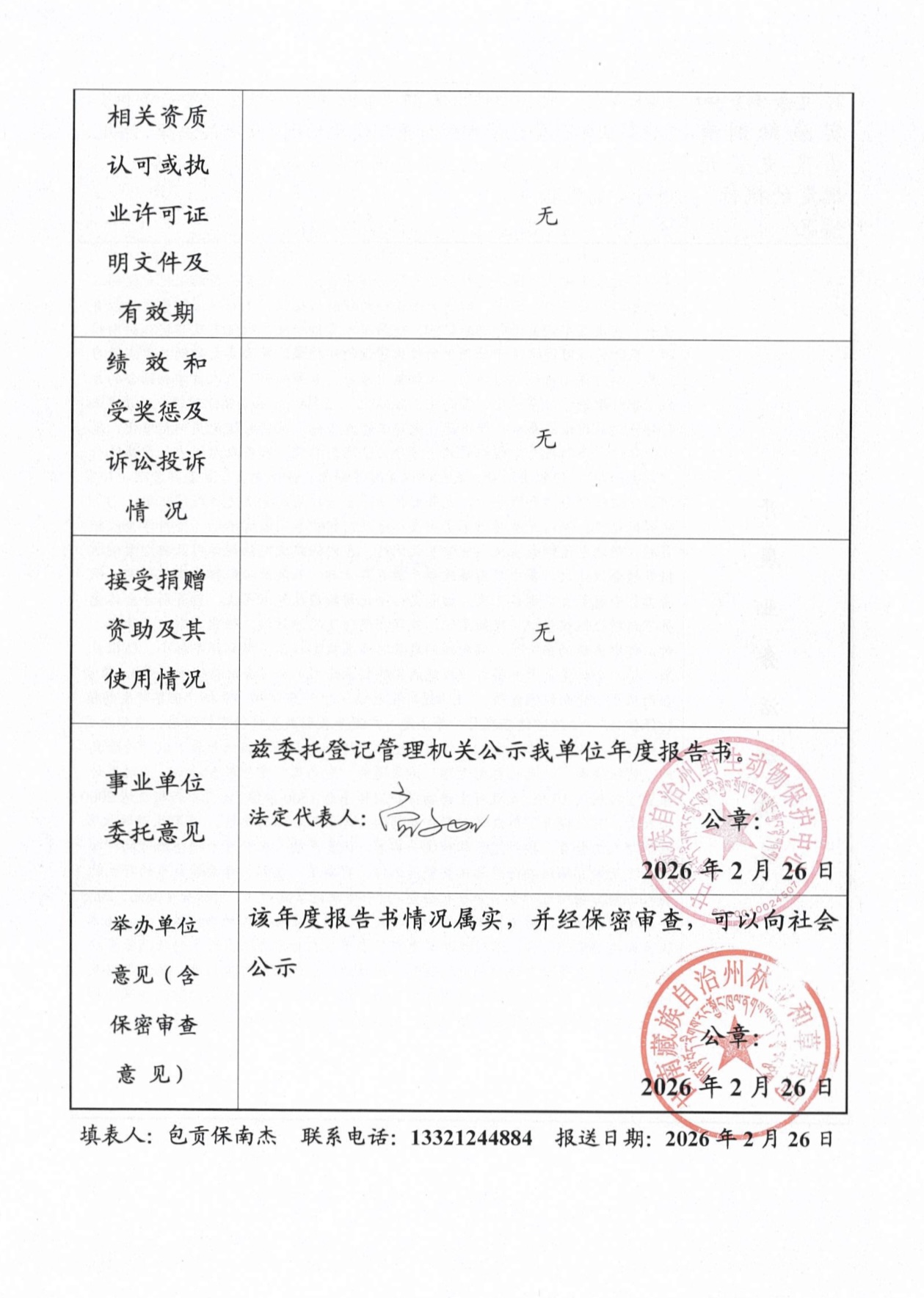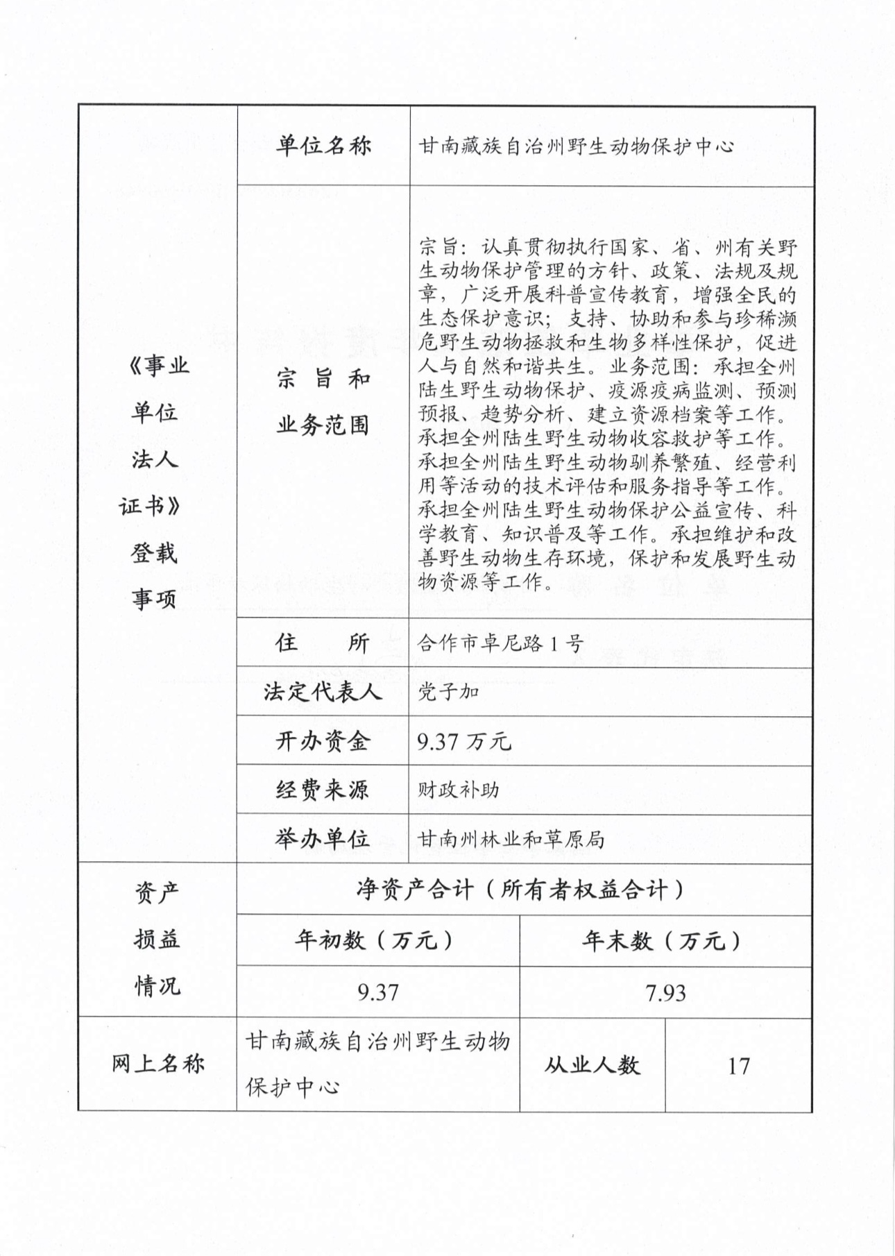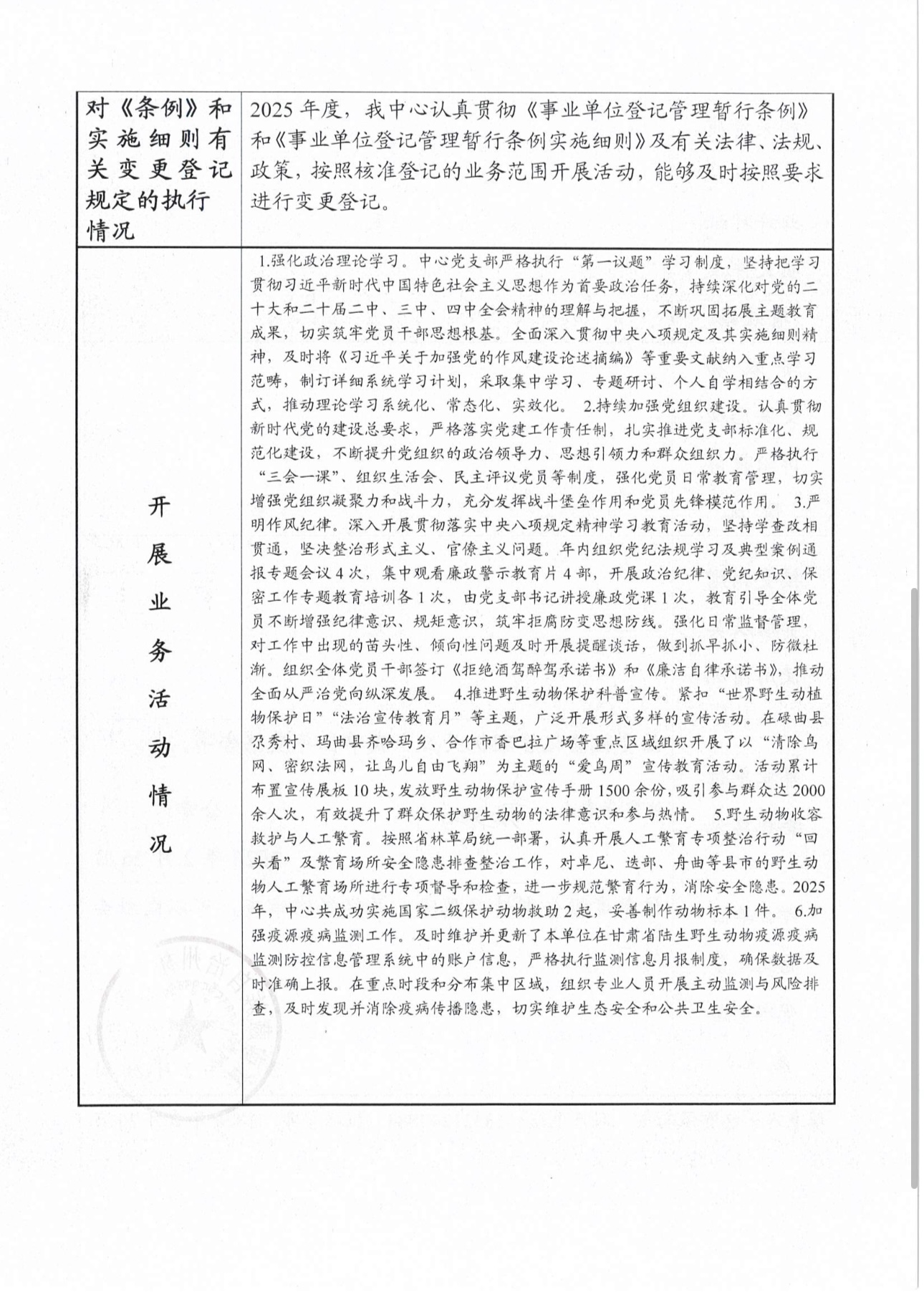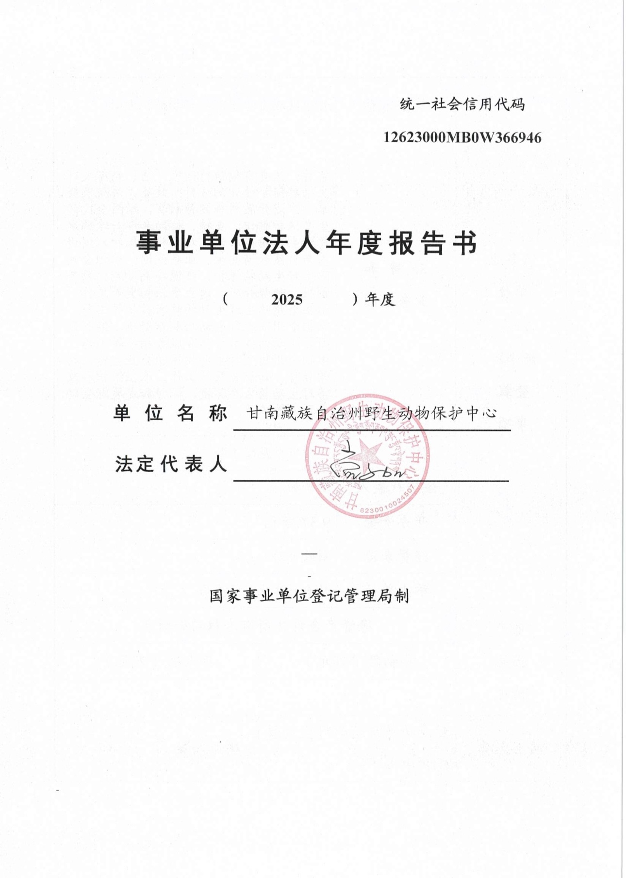 甘南州野生动物保护中心事业单位法人年度报告书(2025年度)