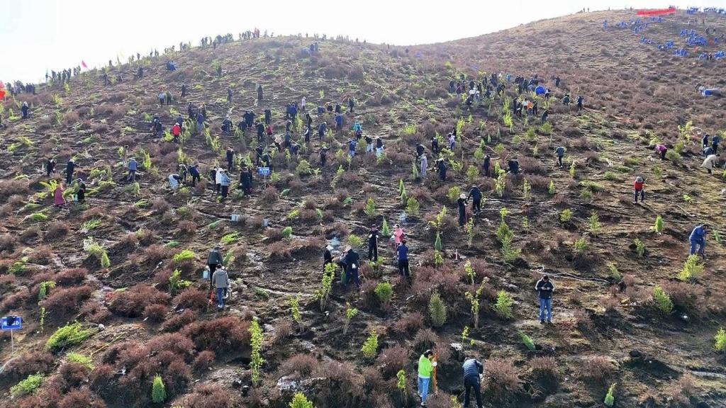 舟曲县:科技赋能破解难题,三级包抓见缝插绿。以“藏乡江南 花开舟曲”为目标,推行“县级包片、乡镇包村、党员包点”三级包抓机制,组建党员植绿先锋队,将植树与主题党日有机融合;针对山地地形复杂、人力运苗不便等问题,采用无人机运苗模式,实现“精准投苗、高效植绿”;聚焦白龙江沿岸、“簪花之路”沿线,见缝插绿打造小微绿地与生态庭院,义务植树累计造林1281亩、栽植苗木21.95万株,实现推窗见绿、出门见景、四季常青。